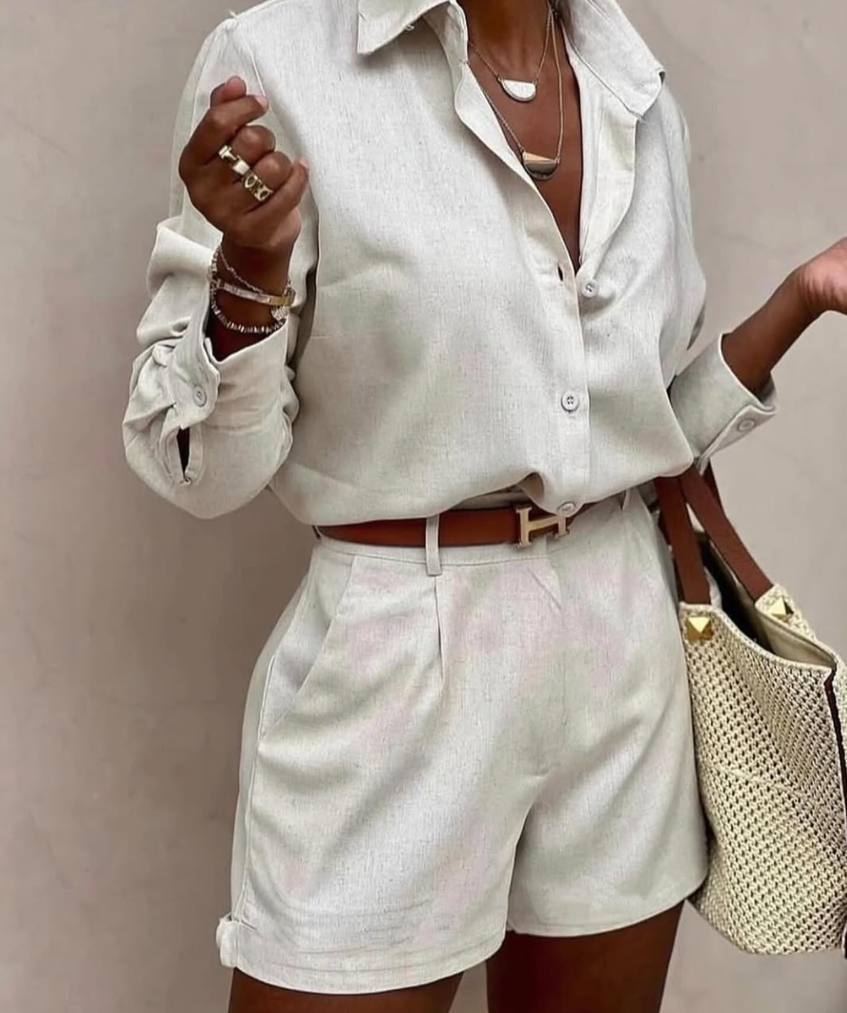Conjunto PINHEIROS - Beige - Conjunto pantalón largo con top cruzado
